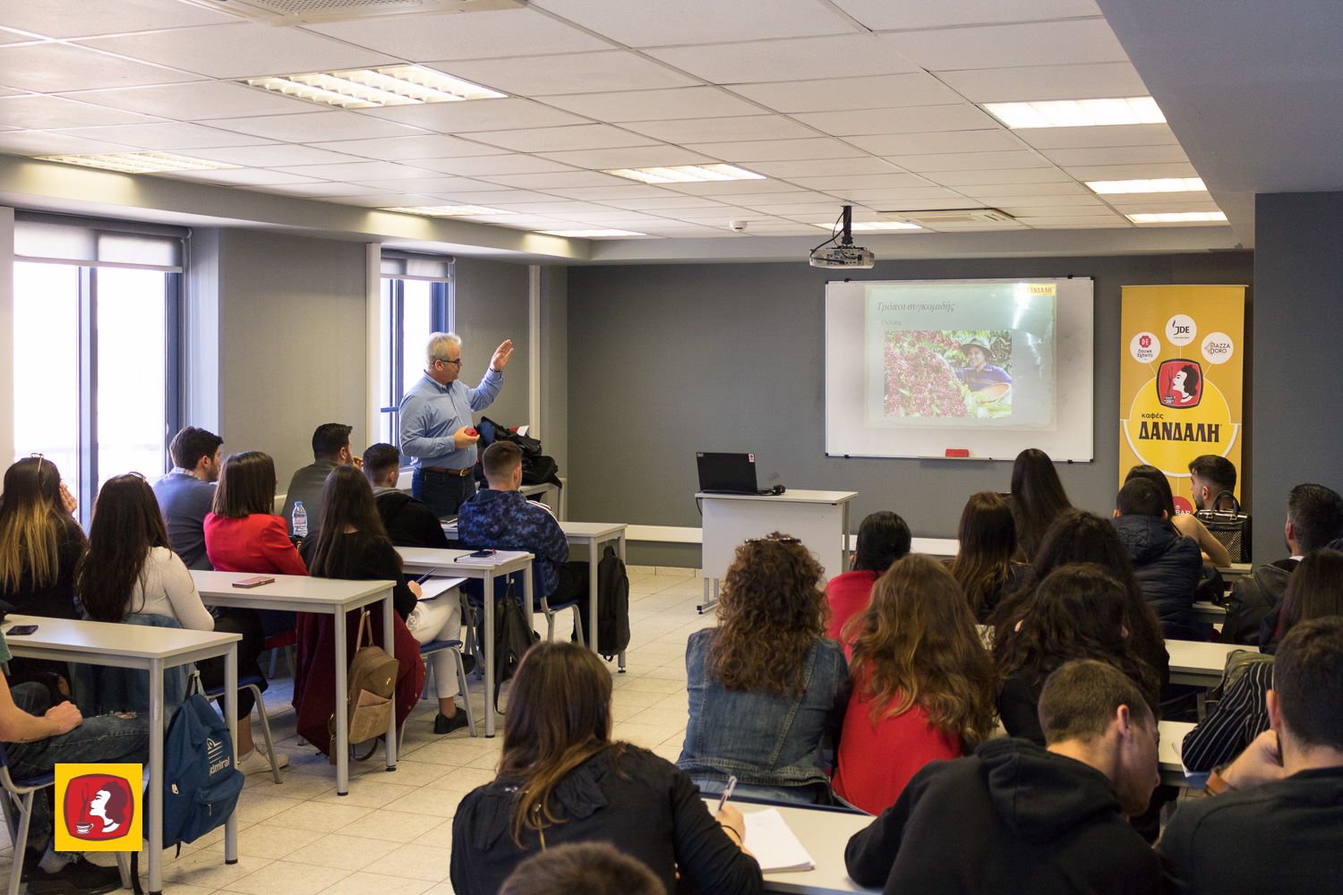 Ο κ. Μακράκης μοιράστηκε με τους σπουδαστές του ξενοδοχειακού και επισιτιστικού τομέα την εμπειρία του στον χώρο των πωλήσεων και τις γνώσεις του για τον καφέ. Μίλησε για τα ποικίλα στάδια επεξεργασίας του καφέ, όπως τη συλλογή, την επεξεργασία, τη μέθοδο καβουρδίσματος, τις διαφορετικές ποικιλίες και τη διαχείριση του καφέ και συμβούλευσε τους ενδιαφερόμενους για τα επόμενα βήματά τους. Ήταν για εμάς μια πολύ δημιουργική συνεργασία μέσα από την οποία μας δόθηκε η ευκαιρία να επισημάνουμε τις ιδιαιτερότητες και να αποκαλύψουμε τα μυστικά του καλού καφέ!